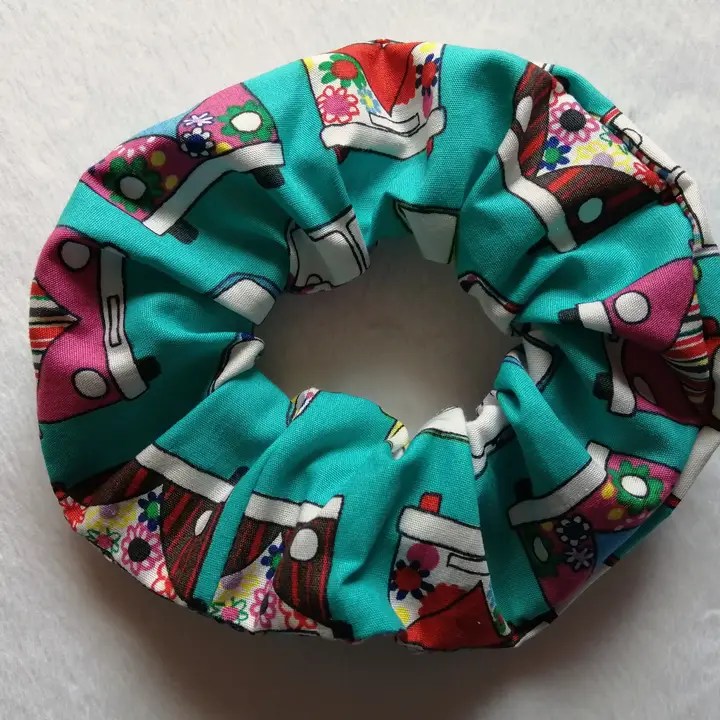 Handmade scrunchie. made with 100% cotton with a cute campervan print. Measures approx. 12cm across.